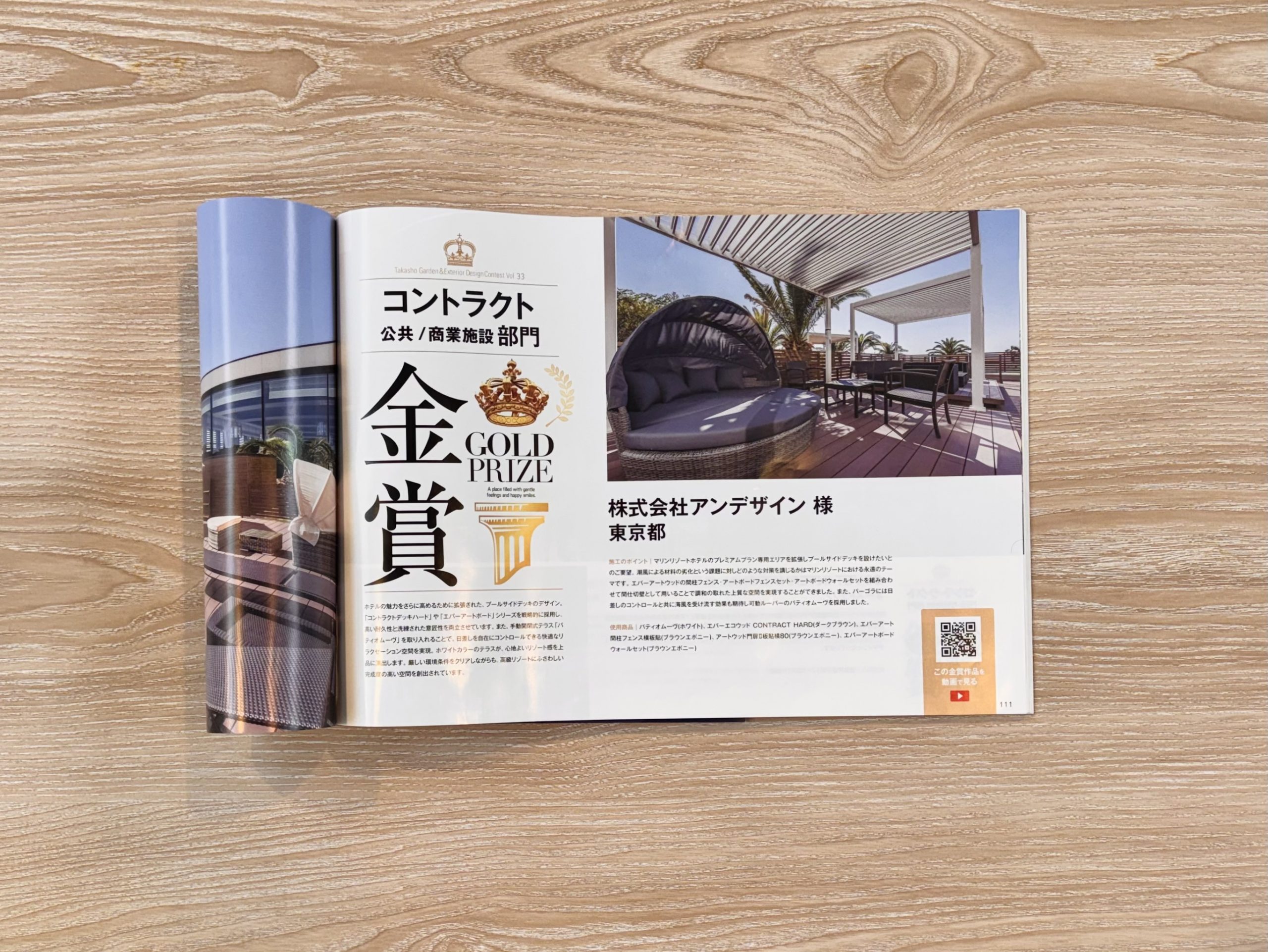 ホテル三日月 富士見亭のプレミアム専用エリアのデザイン施工を担当し、タカショー庭空間 コントラクト部門で金賞を受賞しました。